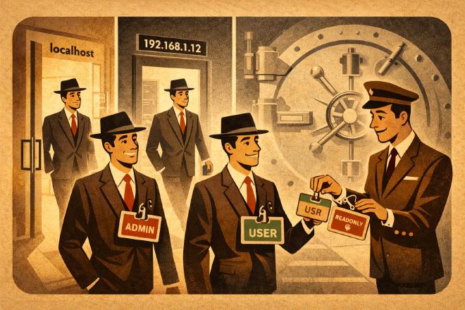 The design choice is not random. MySQL was born in 1995 for the web. Environments where the same database serves applications running on different machines, different networks, with different access requirements.